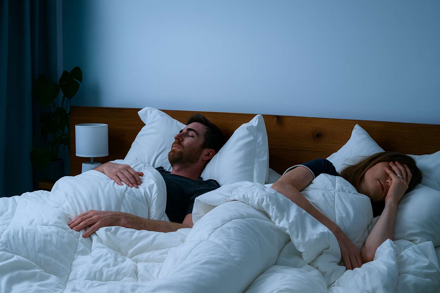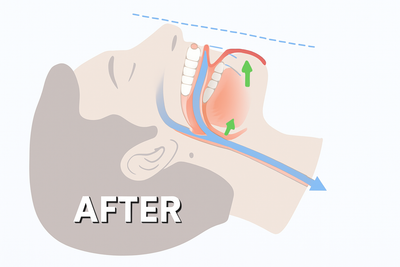 During sleep, the tongue tends to fall back and soft tissues in the throat relax, collapsing the airway. This constriction and resulting vibration of tissues produce the snoring sound